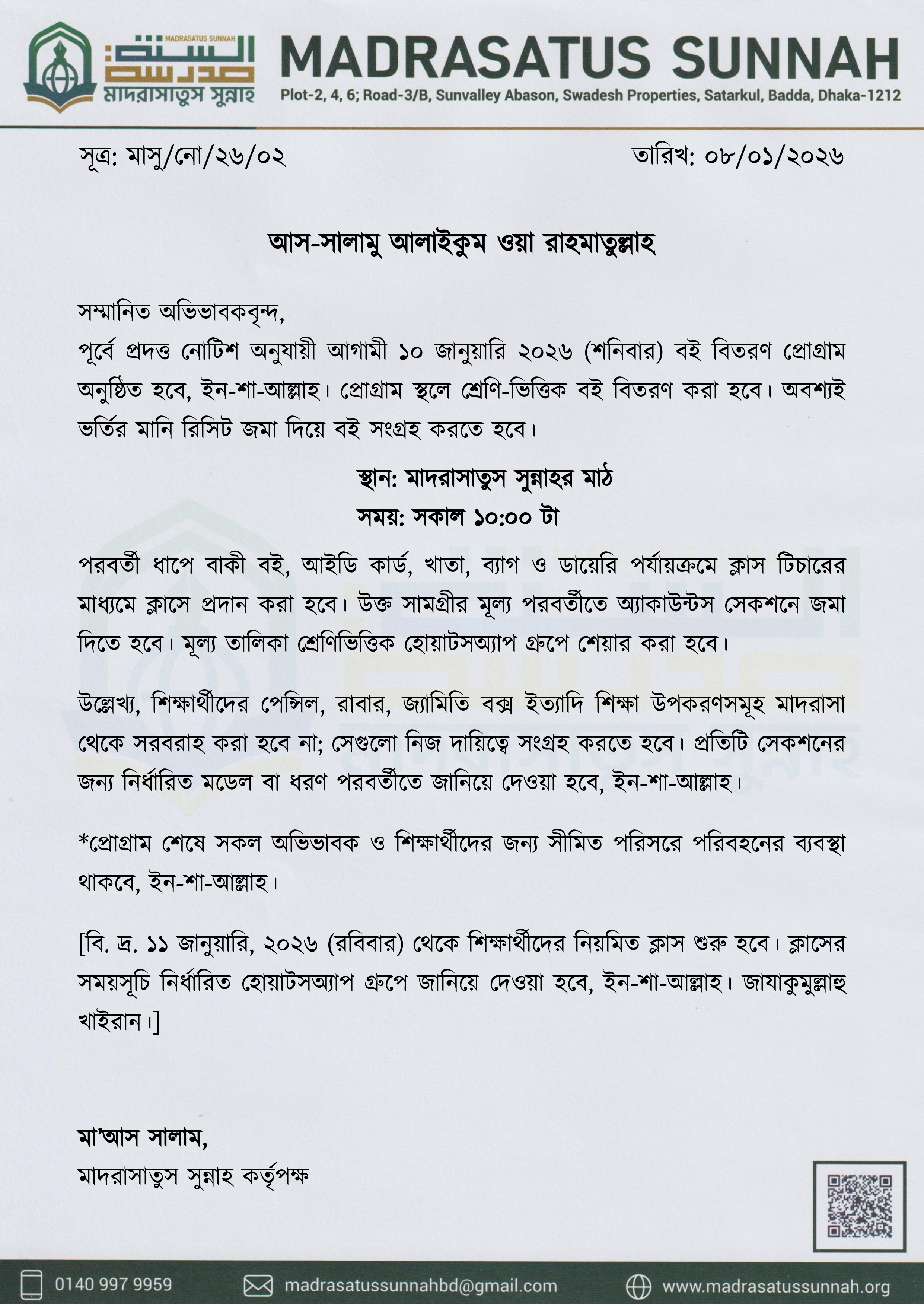 বই বিতরণ ও ক্লাস শুরুর বিজ্ঞপ্তি (২০২৬ শিক্ষাবর্ষ)